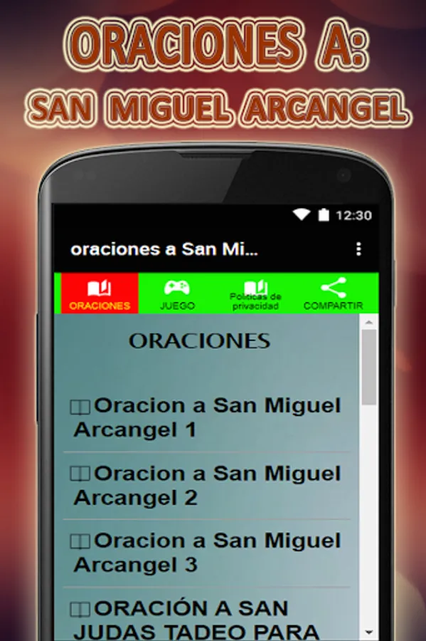 In this application you will find the different prayers to San Miguel Arcangel, San Judas Tadeo, you will also find the different prayers to San Martin Caballero, Prayer to San Martín Caballero for good luck, Prayer to San Martín Caballero to ask for Sustenance, Prayer to San Martín de Caballero para la Salud, Prayer to San Martín de Caballero to ward off economic problems, Prayer to San Martín Caballero for the business fortune, you will also find the different prayers to the Just Judge, The authentic Prayer to the Just Judge, Prayer to the Just Judge to rid of Injustices , enemies and jails, Prayer to the Just Judge for protection against dangers and evils, Prayer to the Just Judge for women, Prayer to the Just Judge for men.