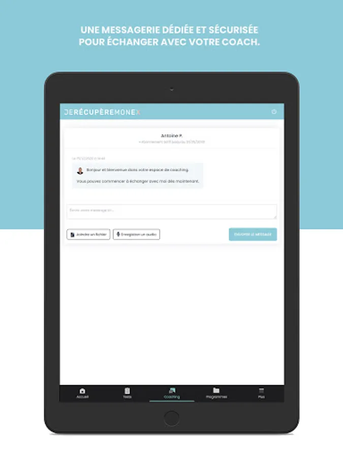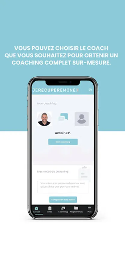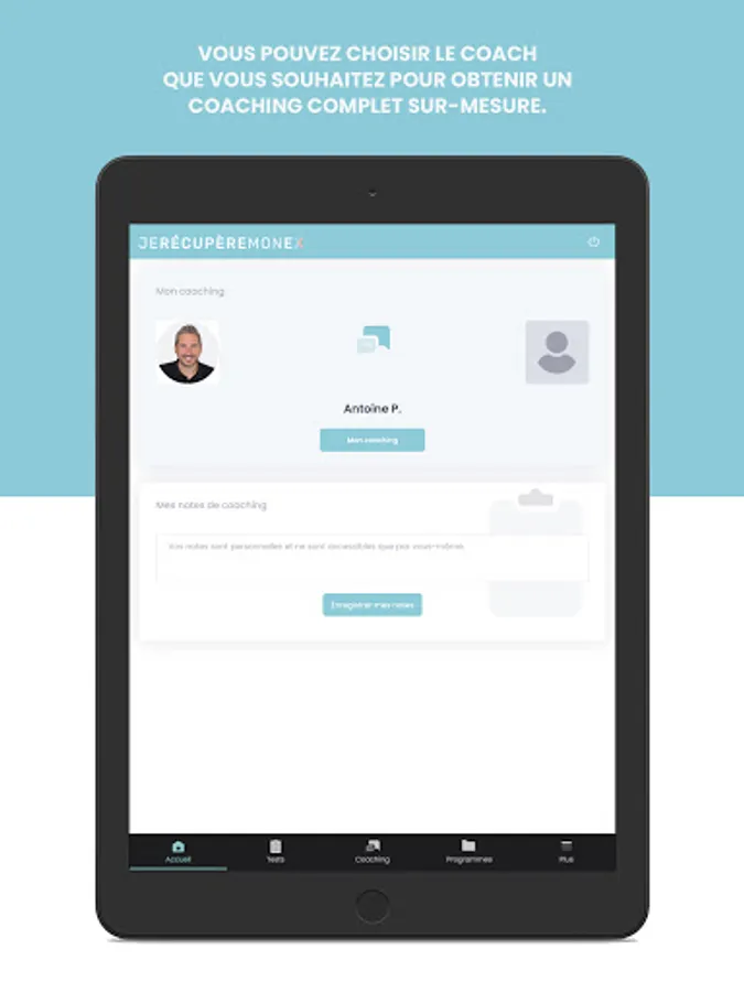 The "JRME" application provides you with tailor-made coaching in just a few clicks. Simplicity and peace of mind are the key words. You are never alone, as soon as you register, we suggest you answer a short questionnaire to better understand your situation and your expectations. Then you can choose the coach you prefer.