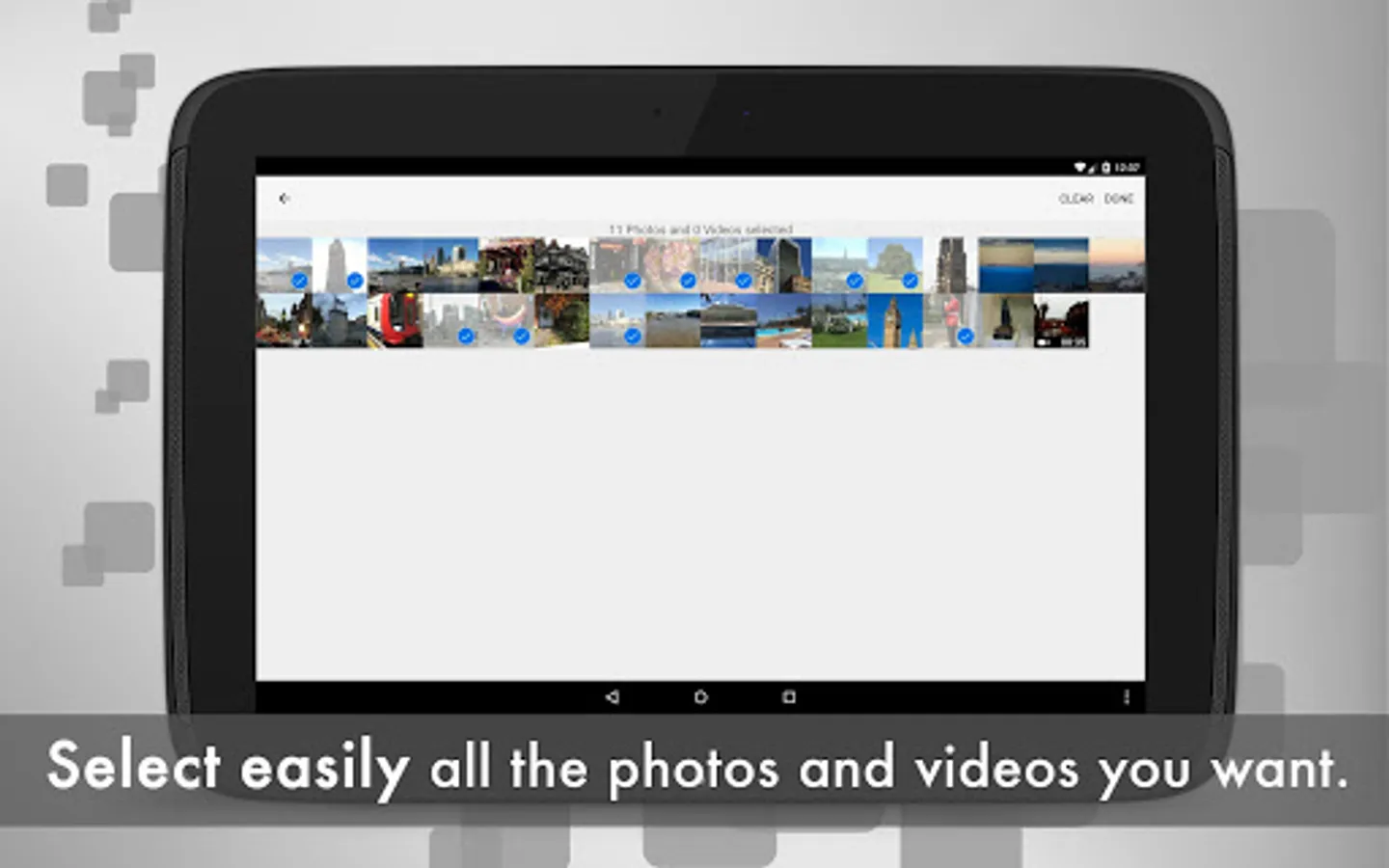 • Free version allows you to transfer up to 5 photos at once at medium quality. Upgrade to PRO version and transfer all the photos you want also with Full Quality.