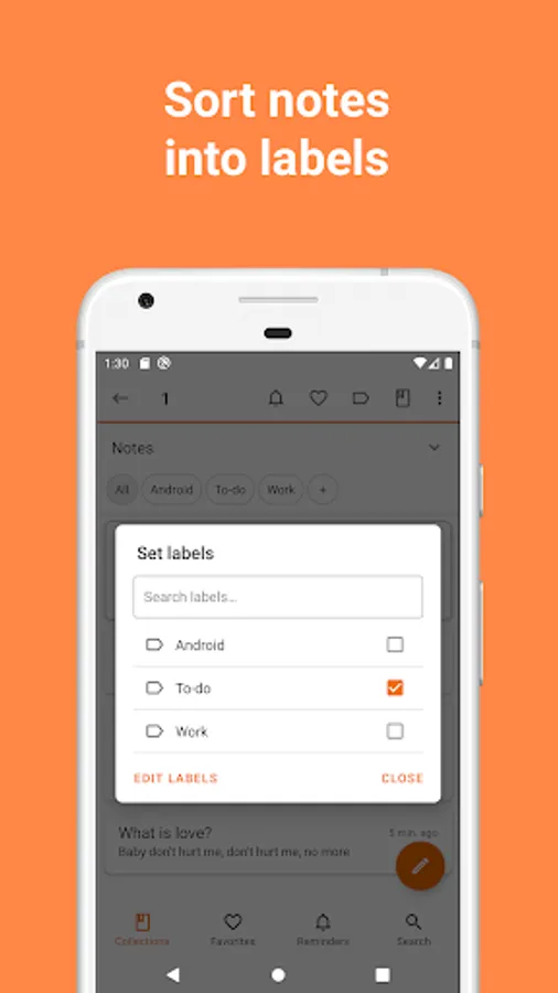🏷️ Manage notes with labels, like "in progress" and "done".