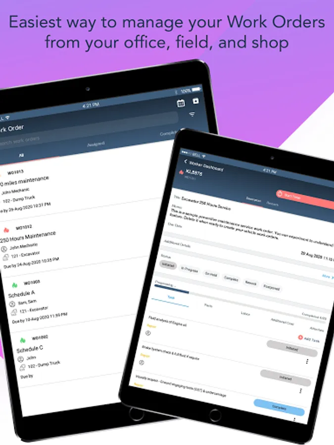 Get alerted in real-time when there is a fault reported by your drivers. Technician gets alert when a work order is assigned to them.
