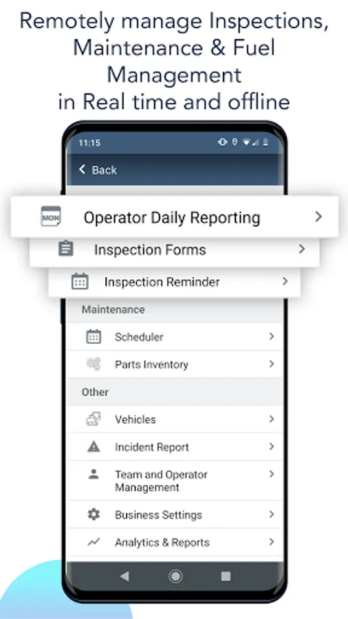 ☆ Bridge information gap and speed up communication between team members. One app connects all your teams (operator, mechanic, supervisor, fleet managers, maintenance manager, technician, store keeper, Safety supervisor and management). Anytime, anywhere, Single version of information available across the company