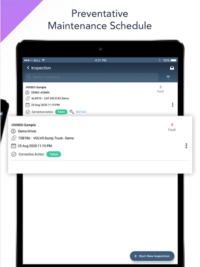 ☆ Vehicle overview – Complete life cycle of equipment or vehicle. All prior inspections, job cards, fuel logs and costing information at one place. Very easy for audit support and year end statics