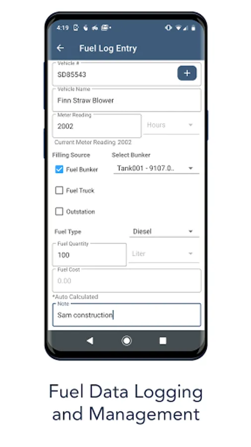 ☆ Fuel consumption log - Report fuel usage via HVI app on each asset