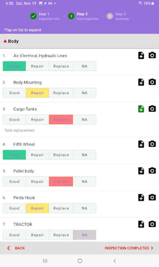 - Capture multiple pictures and attach to inspections (DVIR) report.