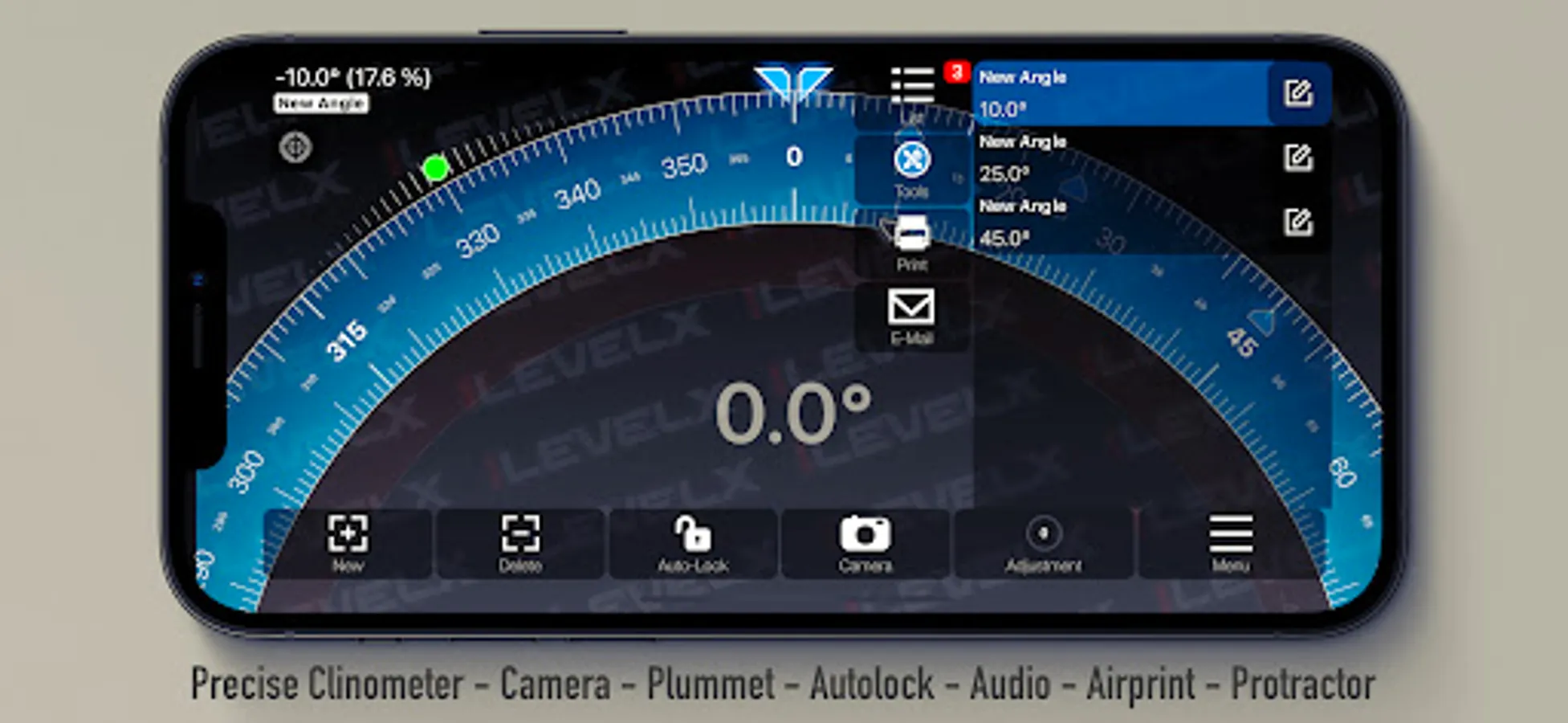 Your search for a perfect mobile clinometer, protractor app for measuring angles and leveling surfaces ends here.