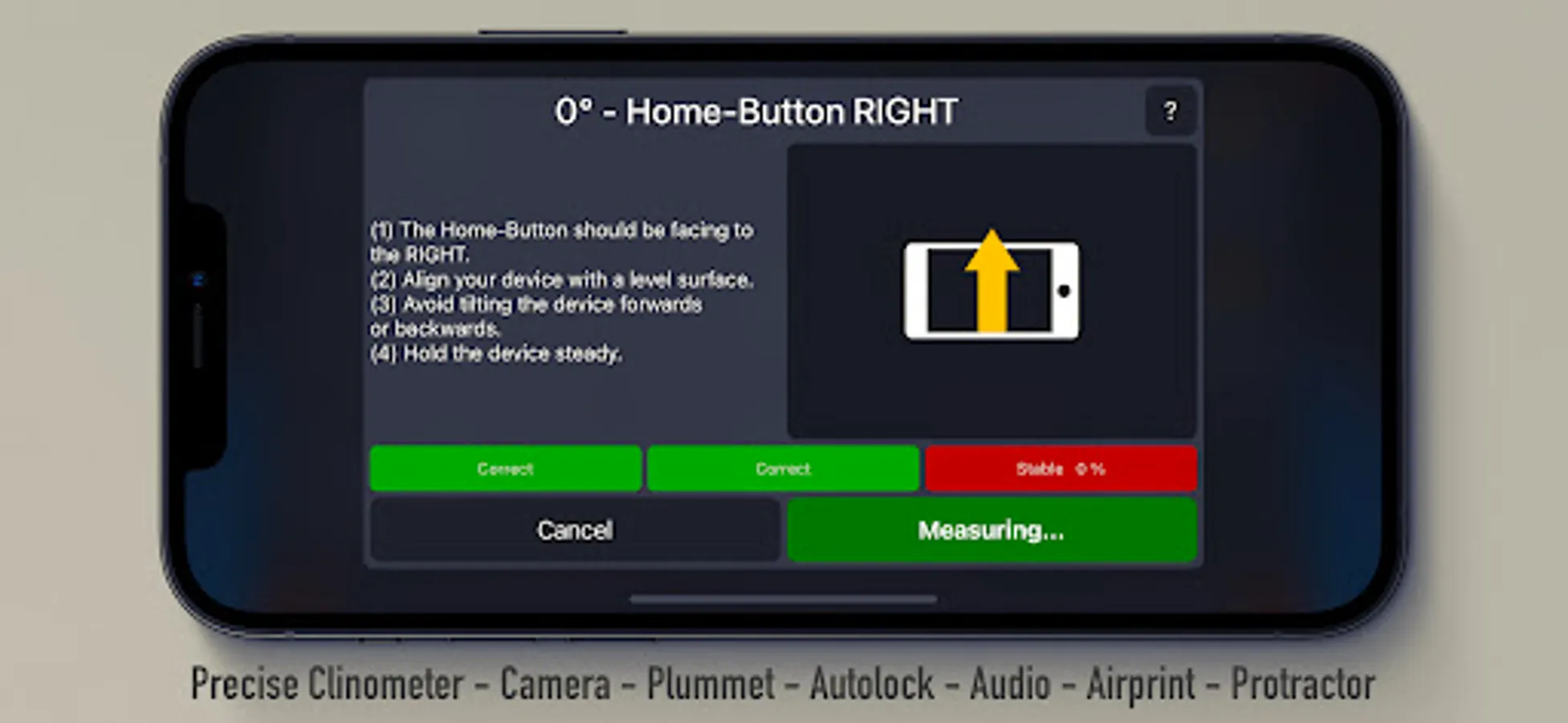 Measure angles: The most precise clinometer and digital spirit level in your pocket.