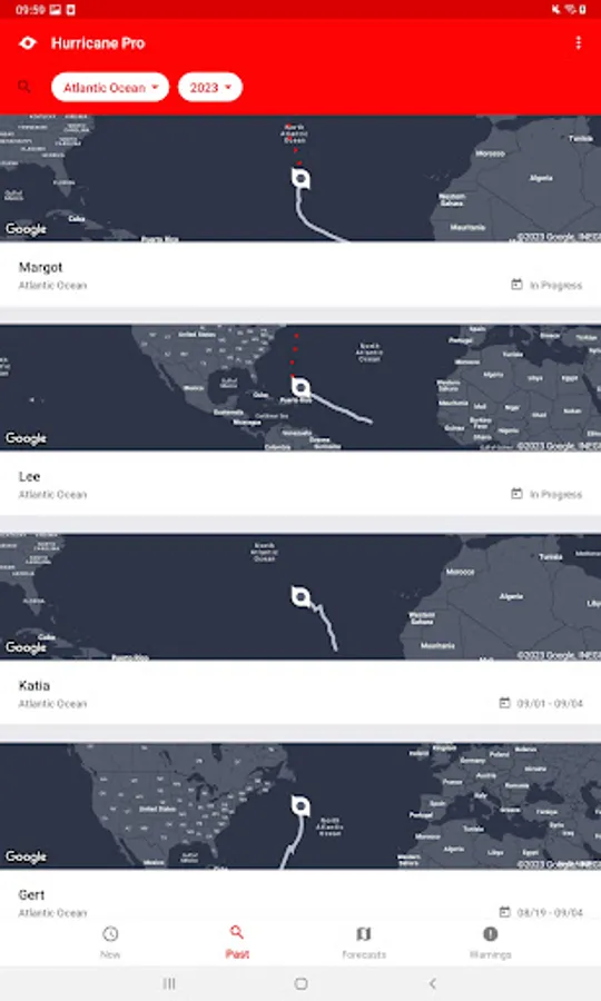 - Track specific hurricanes and receive notifications every time they are updated just by pressing the notify button!