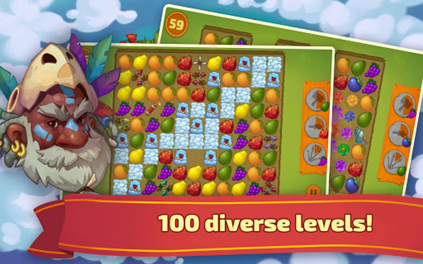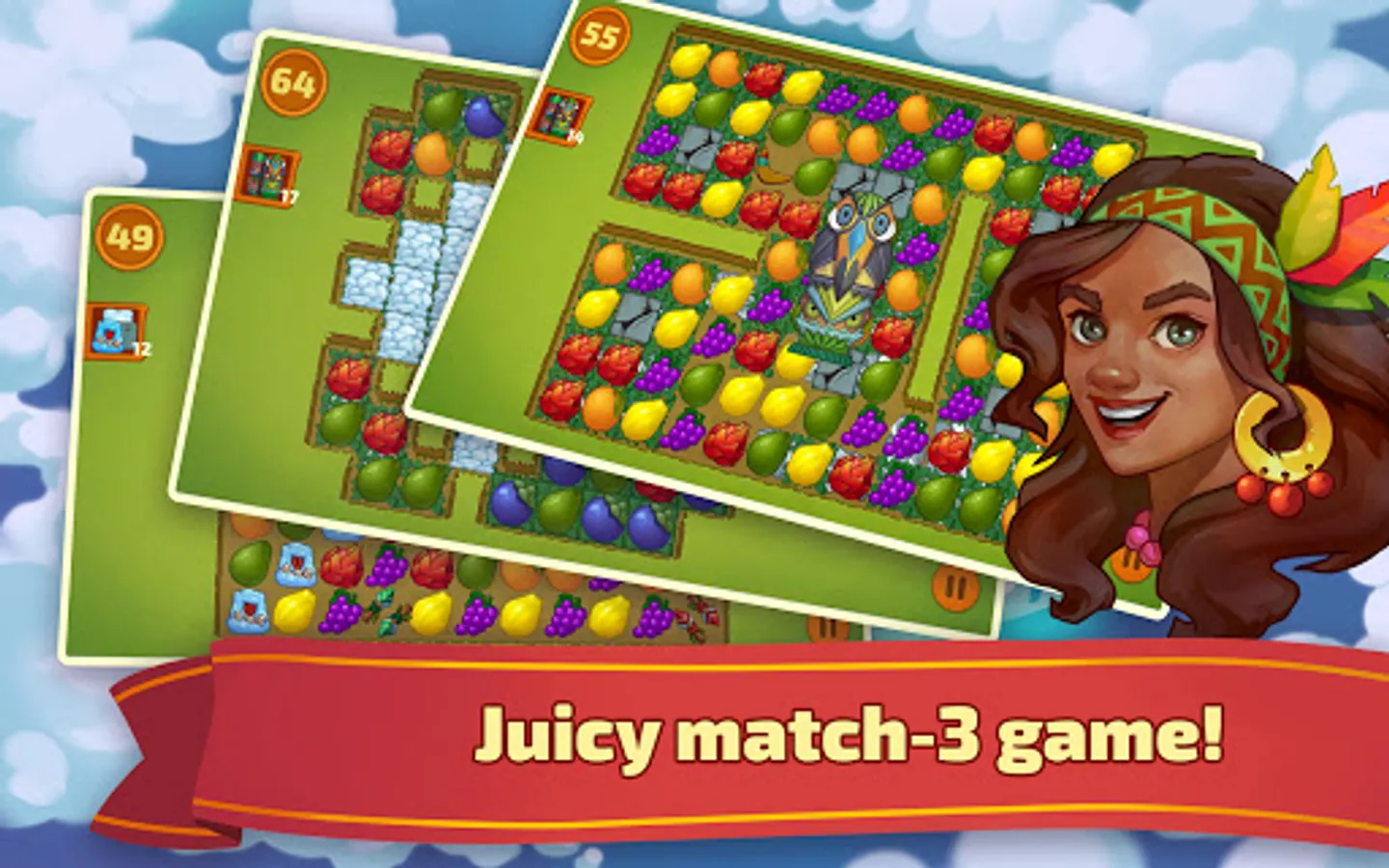 Match tropical fruits there in a row, fancy blast powerful bonuses, crush solid obstacles, solve hand-made puzzle levels, and make the inhabitants of 11 islands free again!