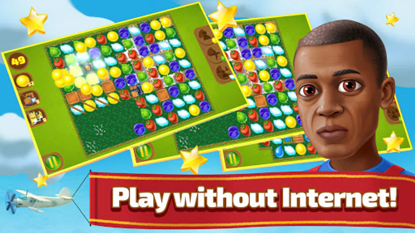 Enjoy playing your favorite 3-in-a-row game for free and internet free! You can play anywhere and restore not manor but the airport sitting in a cafe or even at home!