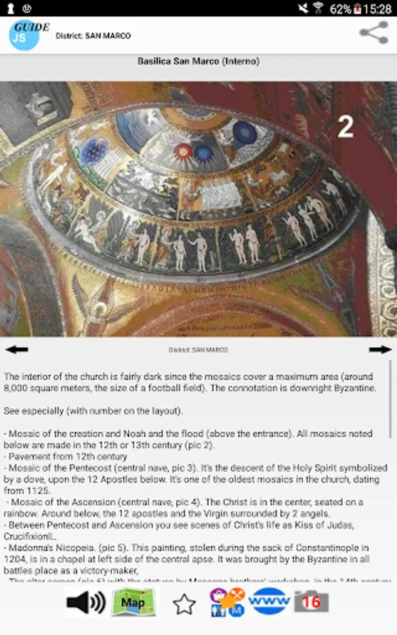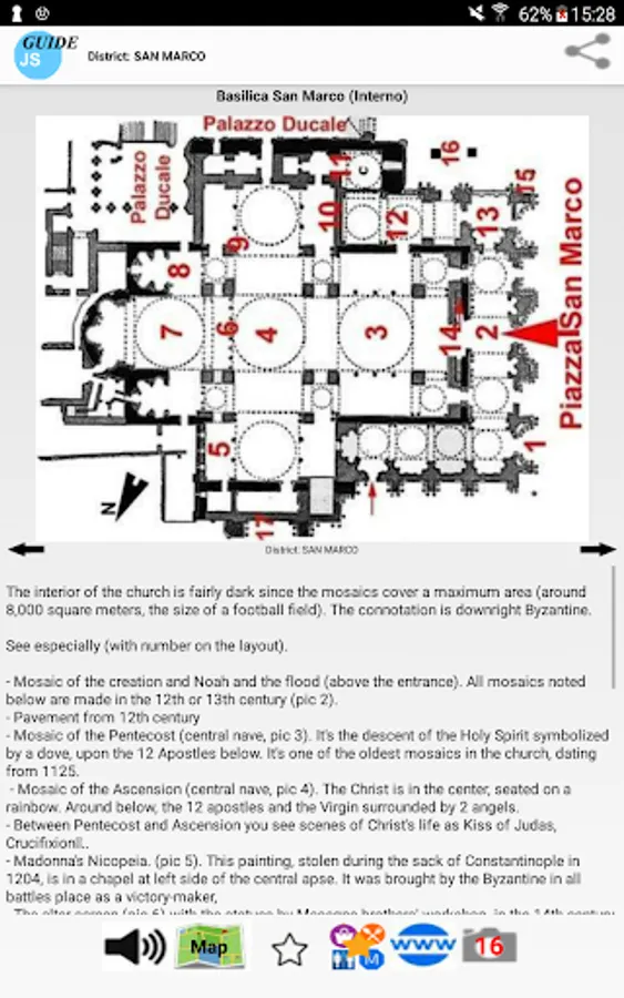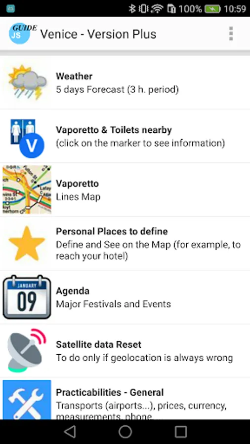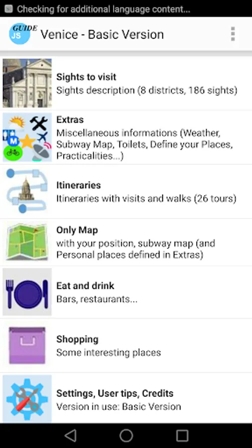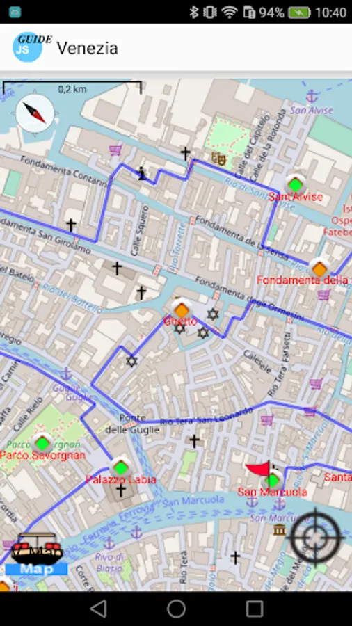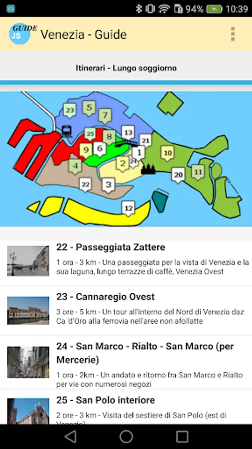 Guide of the city of Venice, with an included self-oriented online or optional offline map and other tourist maps like San Marco, Doge’s Palace, Frari... The guide uses GPS location and compass to orient the map correctly. It offers 26 itineraries, describe 186 sights, and some practical aspects. It's a real tour guide to visit the city by yourself, with a focus on italian history. You find many features, as exclusive maps or highlights for practical POIs (see screenshots). Texts are written only for this guide, with an historical perspective. There is no ads.
