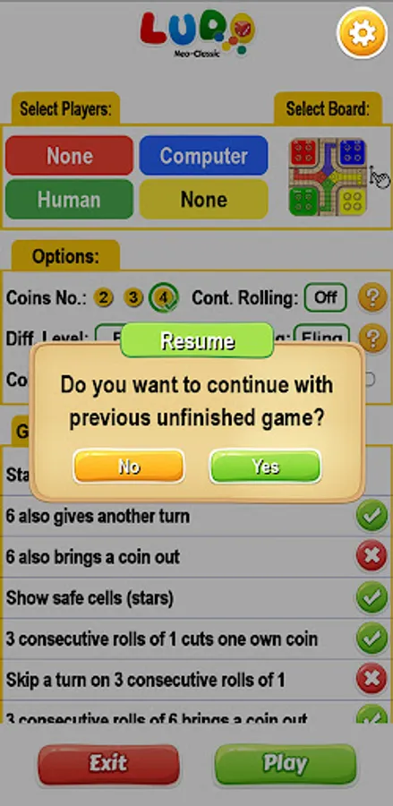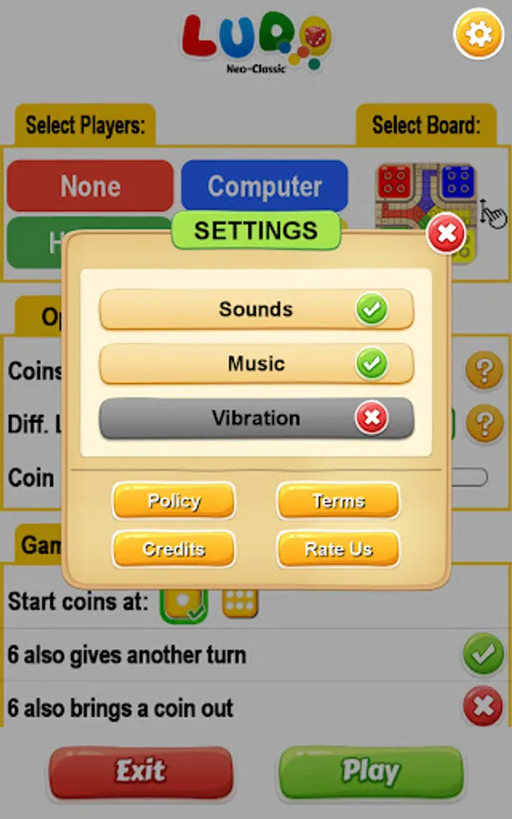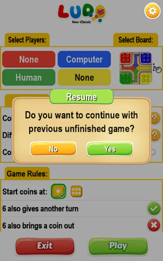 The most versatile/customizable Ludo game available for mobile. It has both classic and new modern design & Nepali/Indian local rules along with international rules. Lots of options/rules for customization according to your need is possible. Hope you enjoy playing it ;).