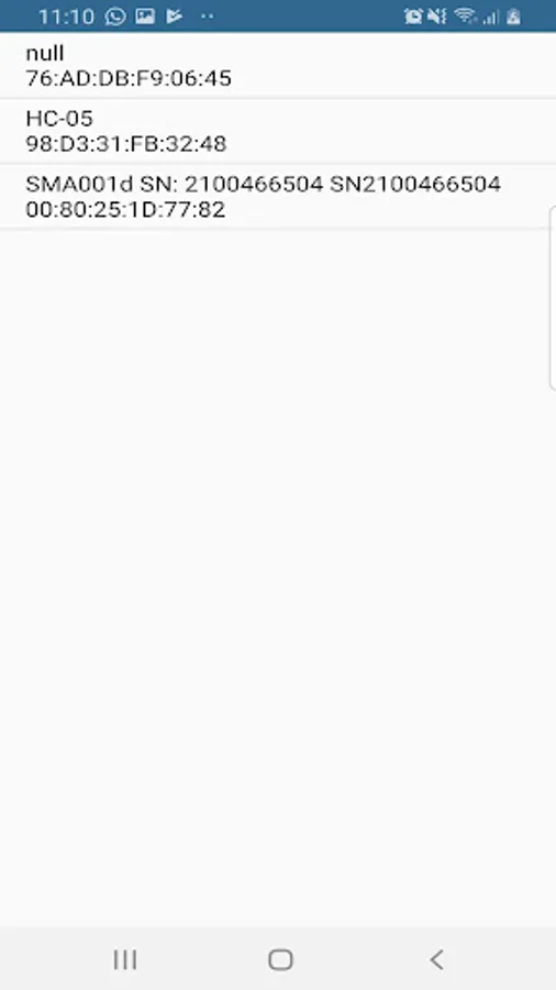 Paired (Bonded) button shows list of already paired (bonded) Bluetooth devices.