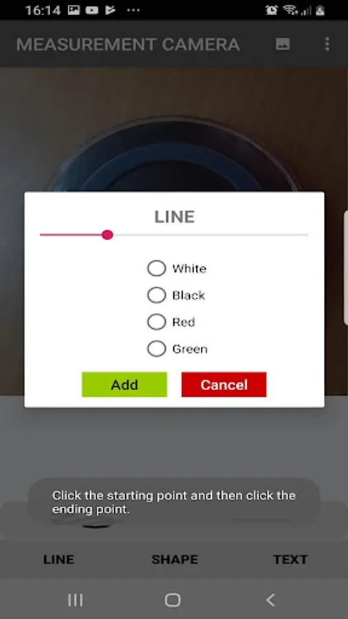 ✓ Take a photo and directly draw measures on it