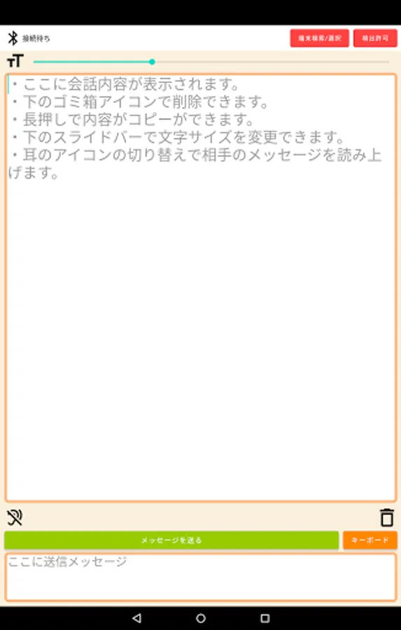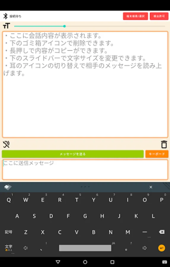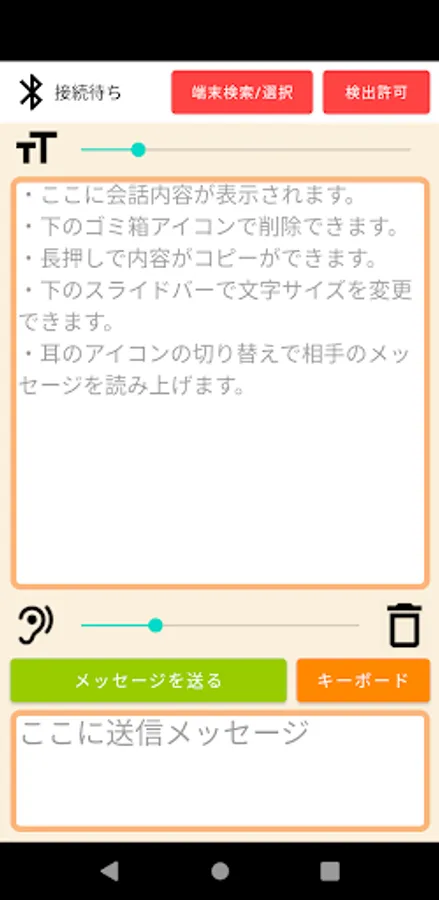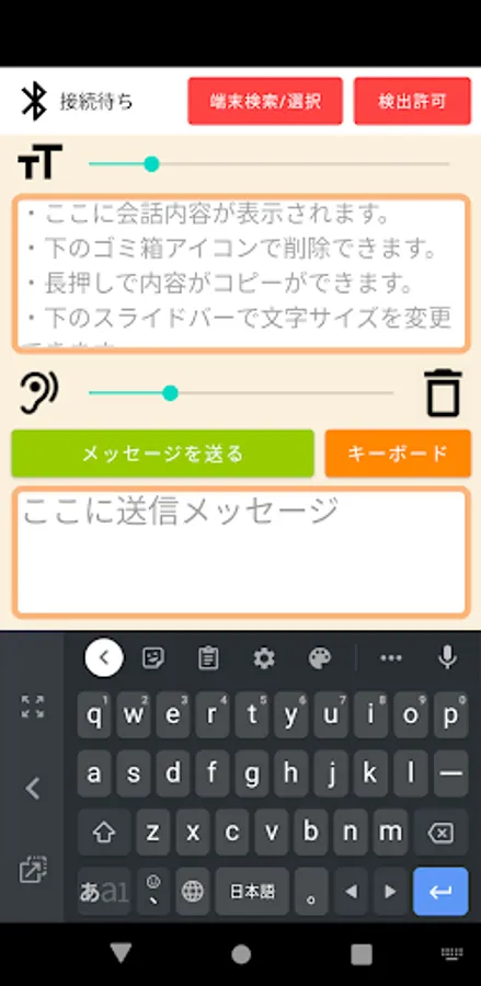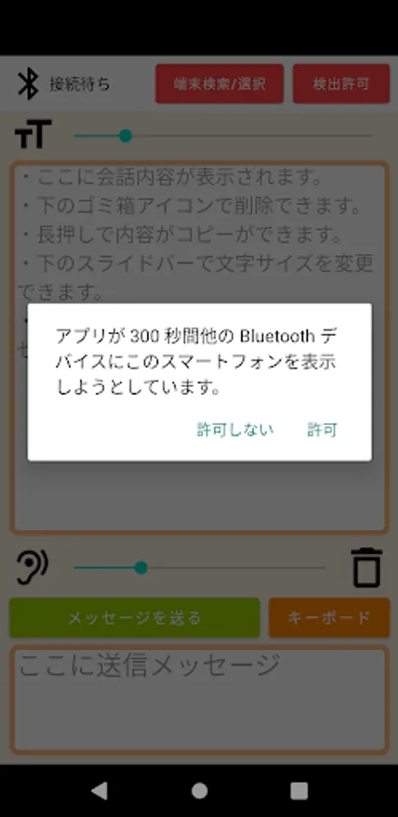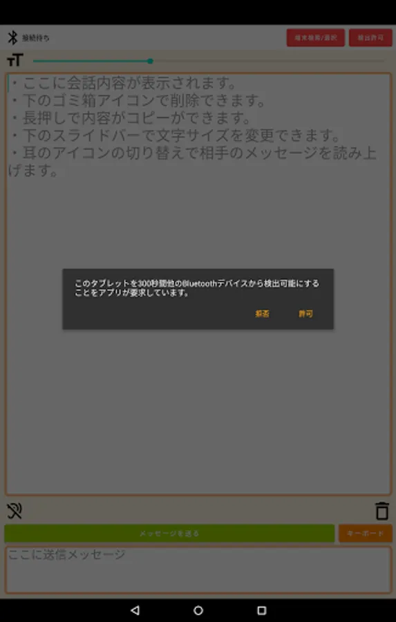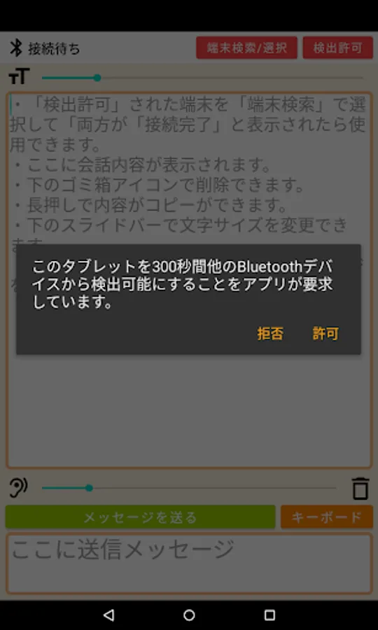 It is an application that you can enjoy chatting at home using Bluetooth.
