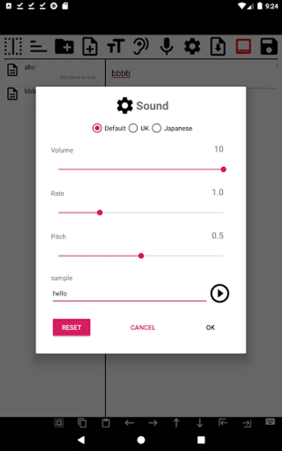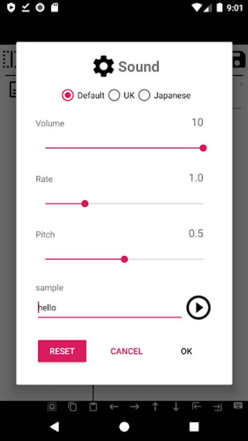 Voice volume, pitch and speed can be set.