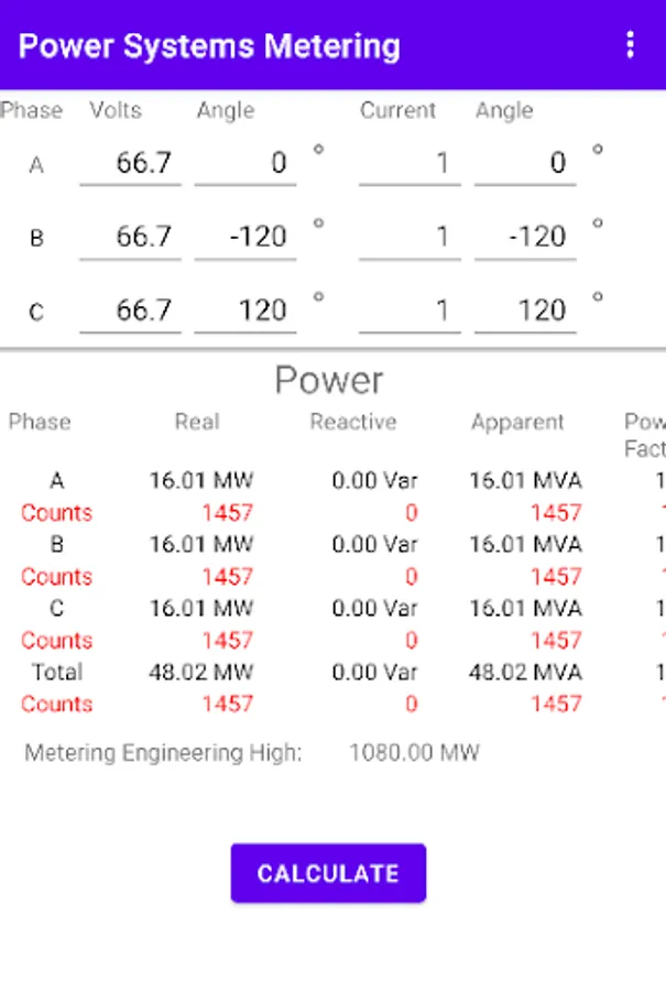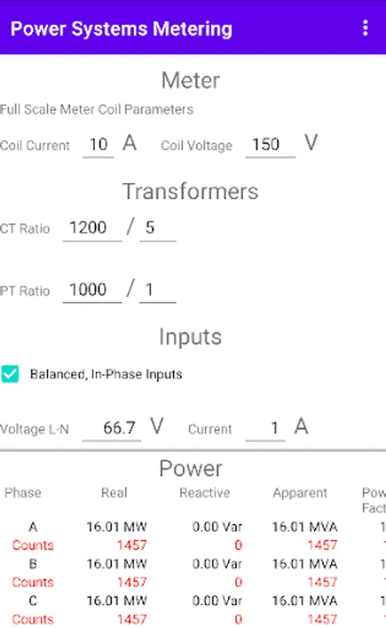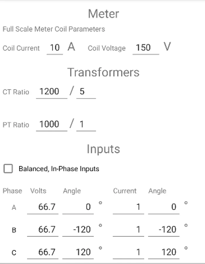 Voltage and current inputs can be balanced or unbalanced three phase inputs with phase angles.