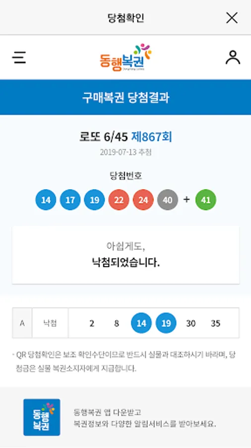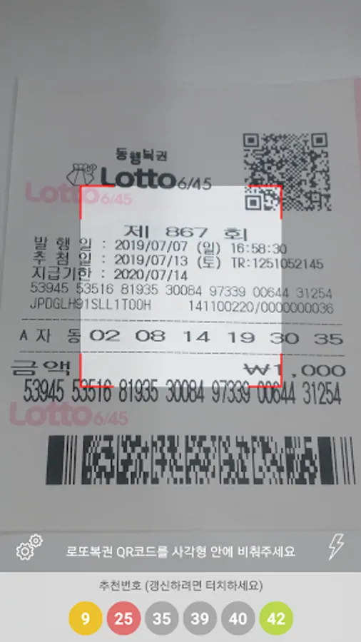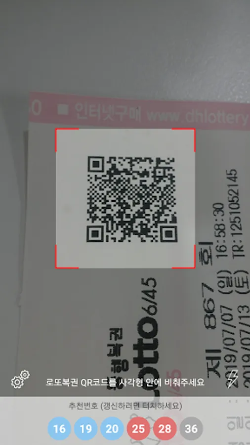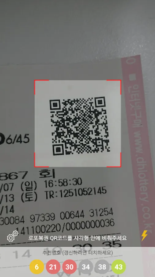 If you use the camera to recognize the QR code on the lotto paper, you can easily check the winning number.