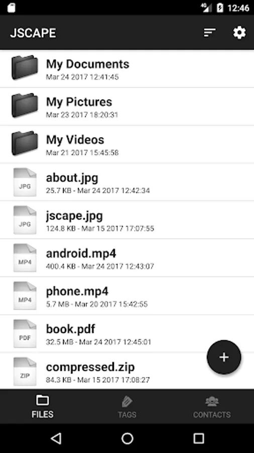 JSCAPE MFT Client may be used in combination with your Android device and JSCAPE MFT Server to manage, view, transfer and share files. Files may be shared ad-hoc using contacts downloaded from JSCAPE MFT Server or sourced from your local Android device contacts. Support for offline mode allows for viewing of previously downloaded files without a network connection. The ability to create contacts, tag files and sort files based on type, date name and size is also provided.