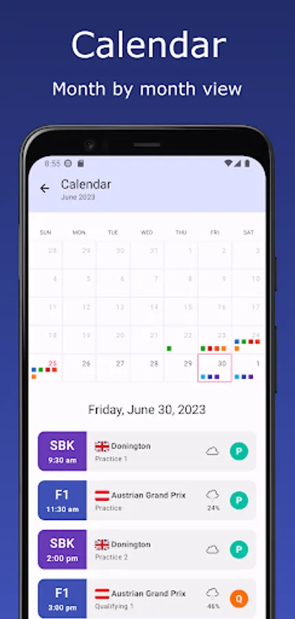Minimalist app to show and get alerted on multiple racing sports upcoming events (season 2023 and next) and their scheduled date and time.