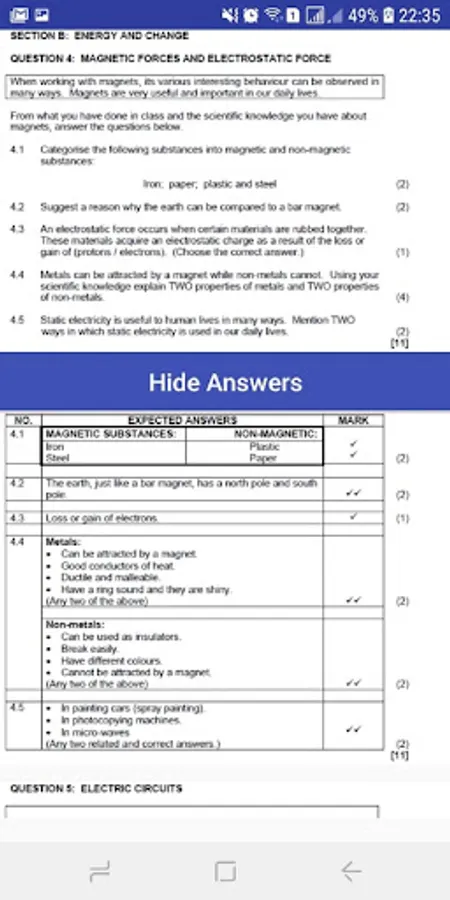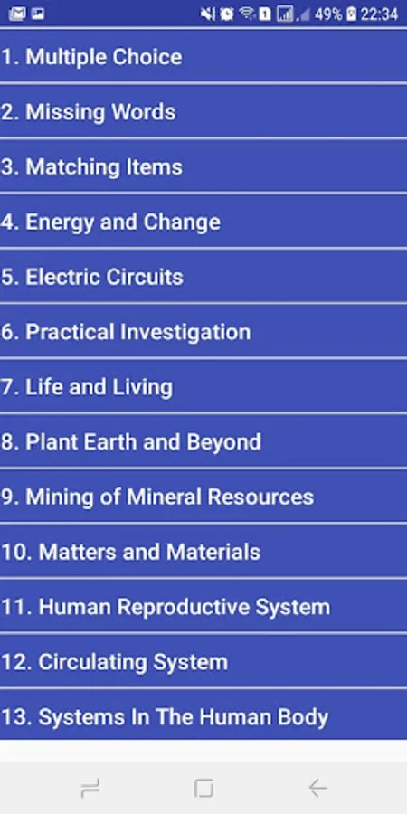 Grade 9 Natural Sciences Mobile Application has the following content: