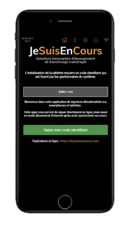 The use of this application requires a subscription to the SoWeSign solution (ex-JeSuisEnCours) which allows you to obtain the start codes of the application.
