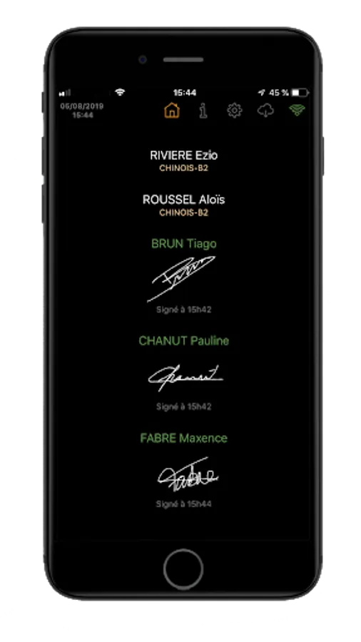 The application allows the collection of signatures for generation of attendance certificates from the online manager then.