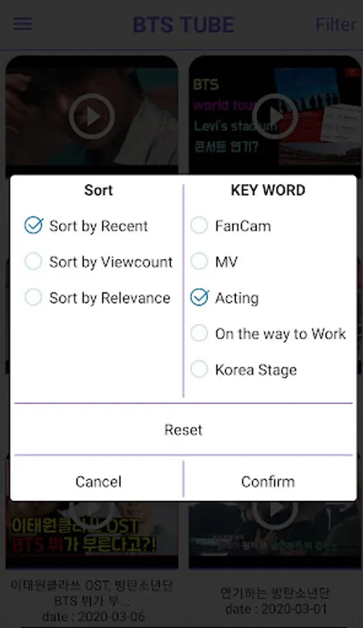 -KeyWord: I made to Search for BTS videos based on 5 Korean keywords