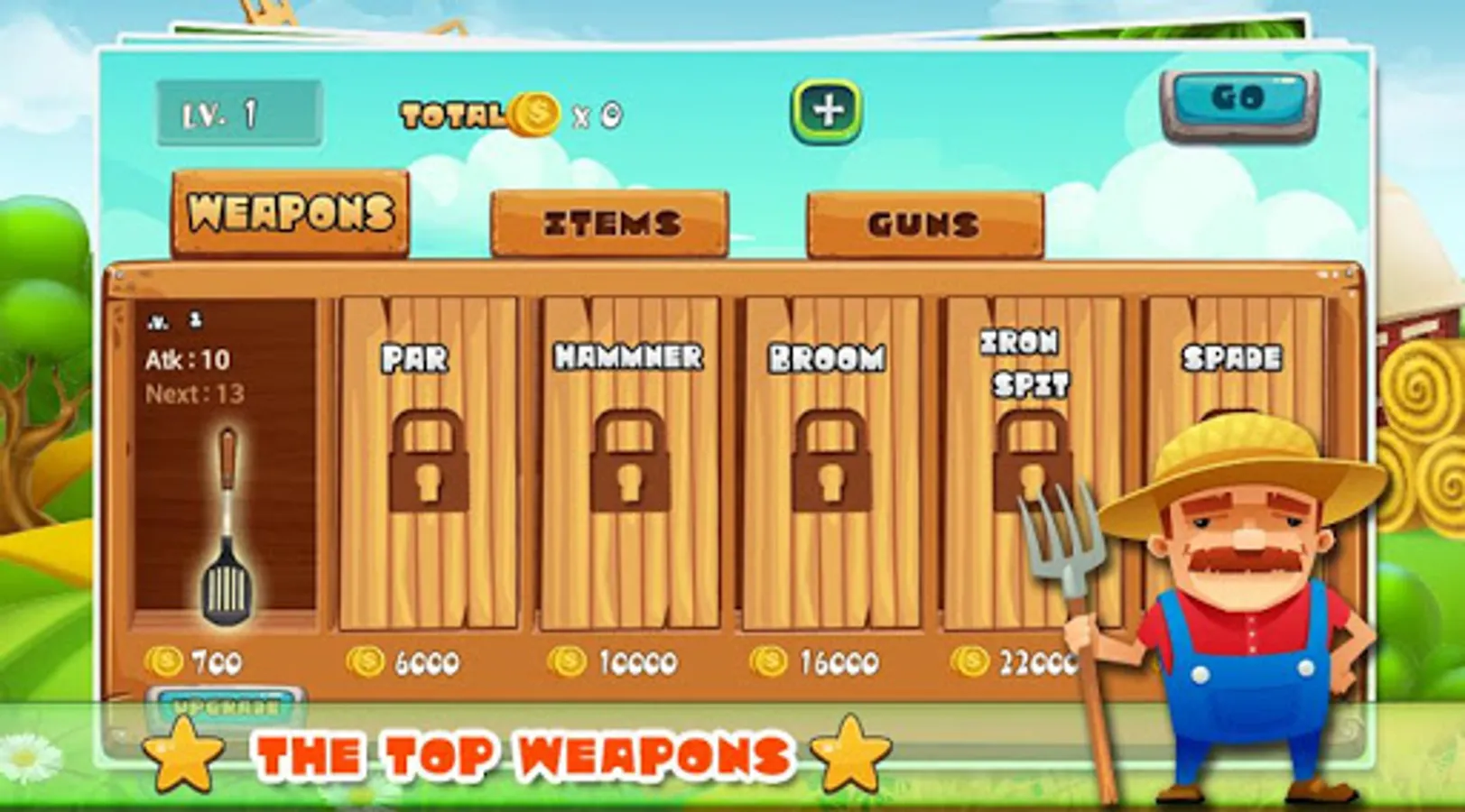 - There are many weapons in your inventory for you to choose, you can update the strength of each weapon