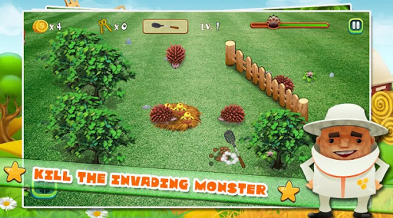 Animals attack the farm, but the farmer's fault, let's kill them, kick them off the wall so they do not eat your chickens. The new gameplay style, you will not be bored when playing, this is where training your skills, show your agility, intelligence to destroy all kinds of pests