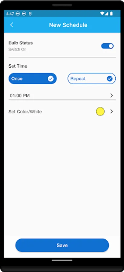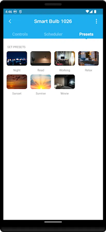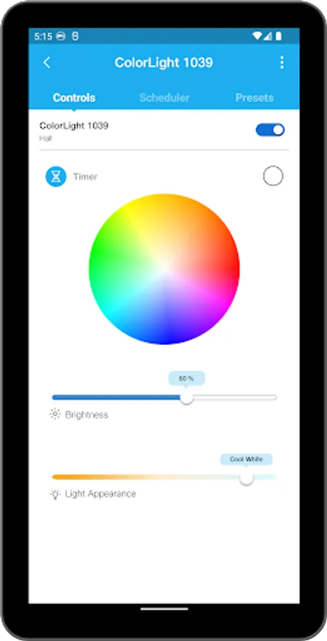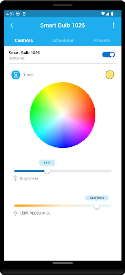 Smart LED: Set Mode(Cool White/Warm White/RGB), Adjust brightness