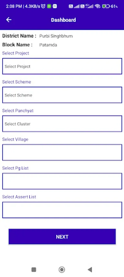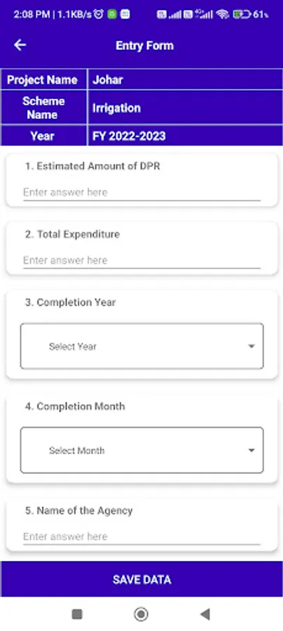 In this app user can record a assert survery data of irigation and pnh of johar.