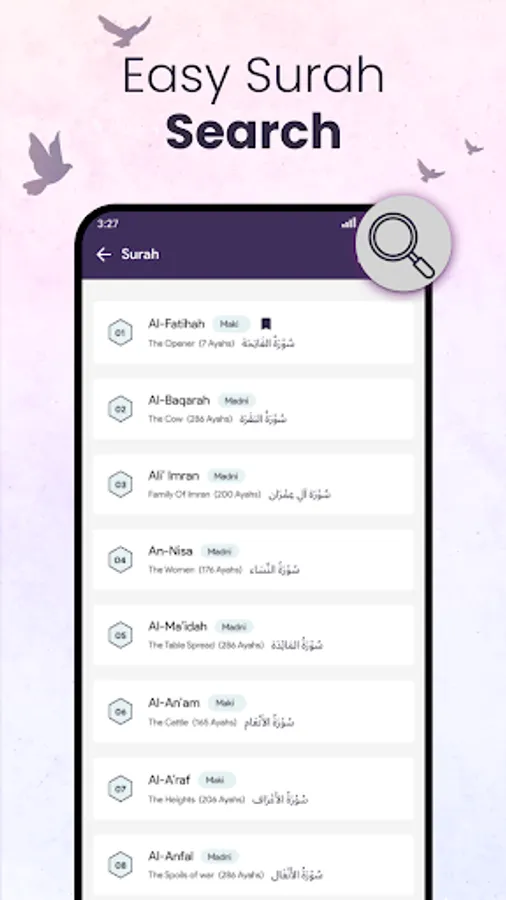 Islam 355 has made Quran study easy. You can download and read offline. Surah names are mentioned in Arabic as well as English along with makki and madni surah in the quran majeed app. You can also bookmark the page to continue from where you left.