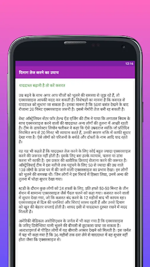 This App have Very Big Data Base of memory power increase tips in Hindi language ...