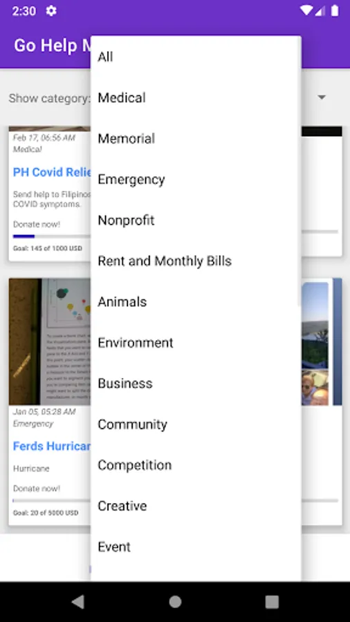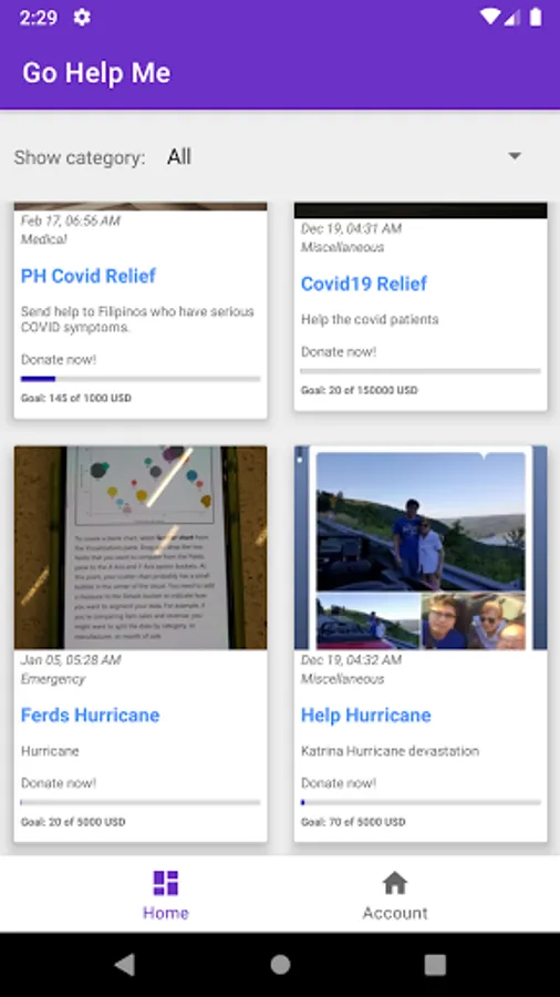 Sharing is caring. With Go Help Me, you can share and donate to events related to fund-raising, medical, memorial, emergency, non-profit, payment for rent and monthly bills, protection for animals and the environment, and others.