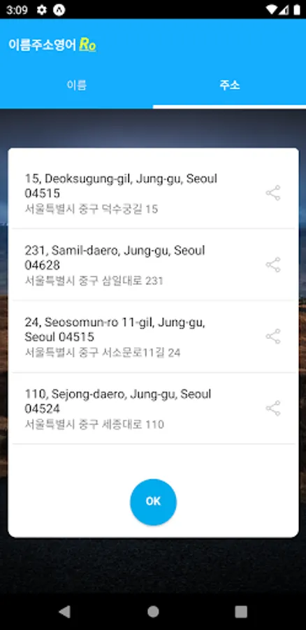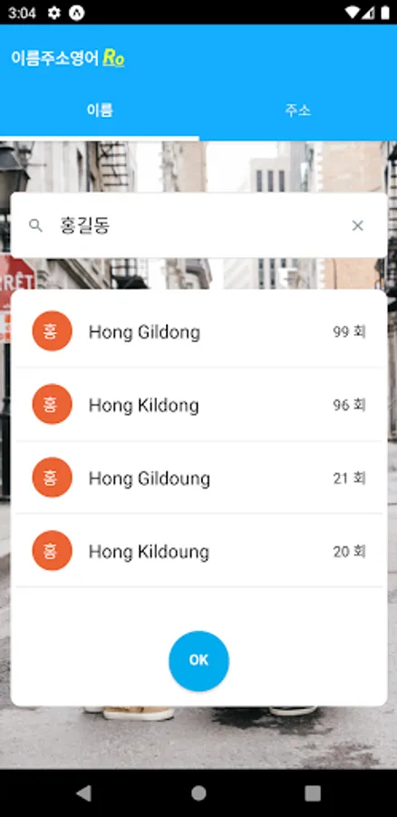 It is an application that converts Korean names and Korean road name addresses into English.