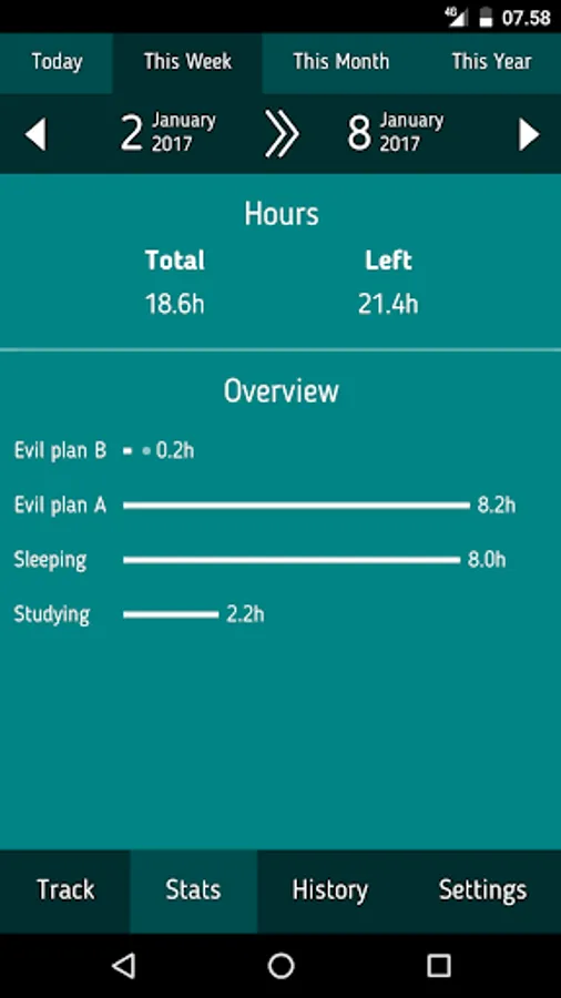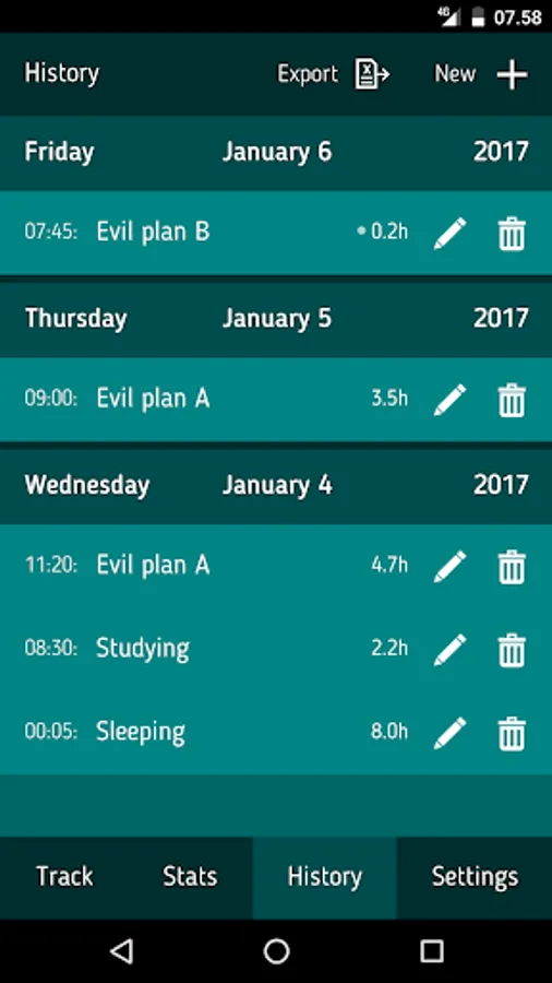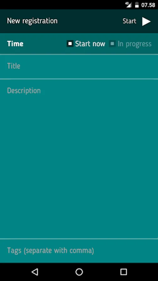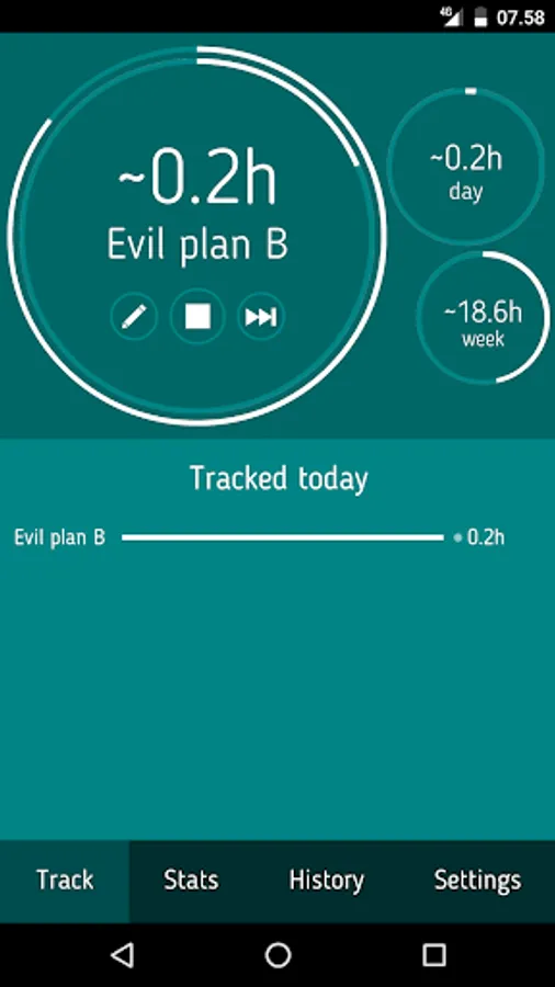 With Hours you just press the play button, write what you are doing and start tracking. And when you're done; press stop. Hours then takes care of grouping what you're tracking, and helps you use the same title each time (to prevent duplicate names).