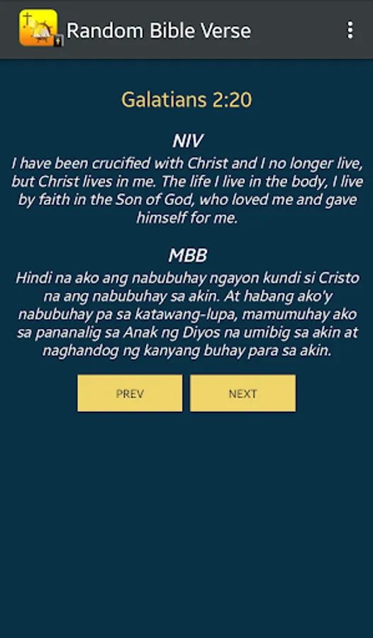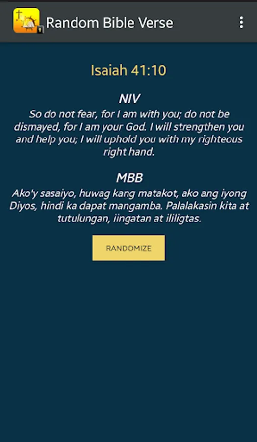 Generates a Random Bible Verse and display it in both NIV (English) and MBB versions (Filipino).