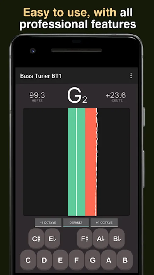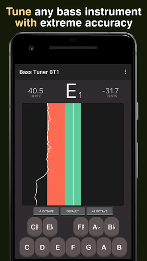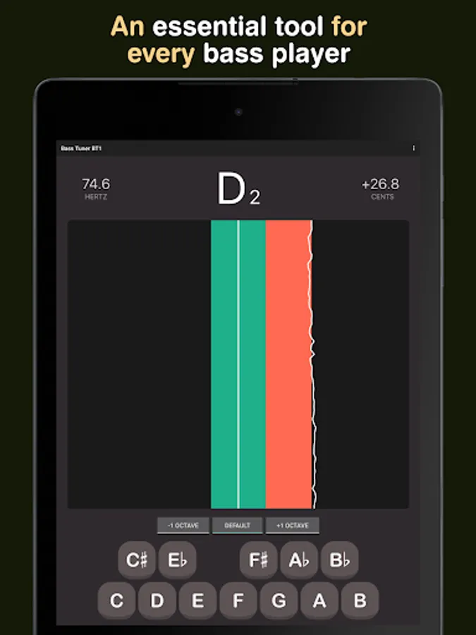 Bass Tuner BT1 is a specialized instrument tuner optimized for tuning low-frequency musical instruments. Tune any bass instrument (bass guitar, double bass, bassoon, bass clarinet, bass trombone, bass saxophone, cello etc.) with this extremely accurate and easy-to-use chromatic tuner. Bass Tuner BT1 also comes with a handy tone generator that plays any note as a reference for tuning.