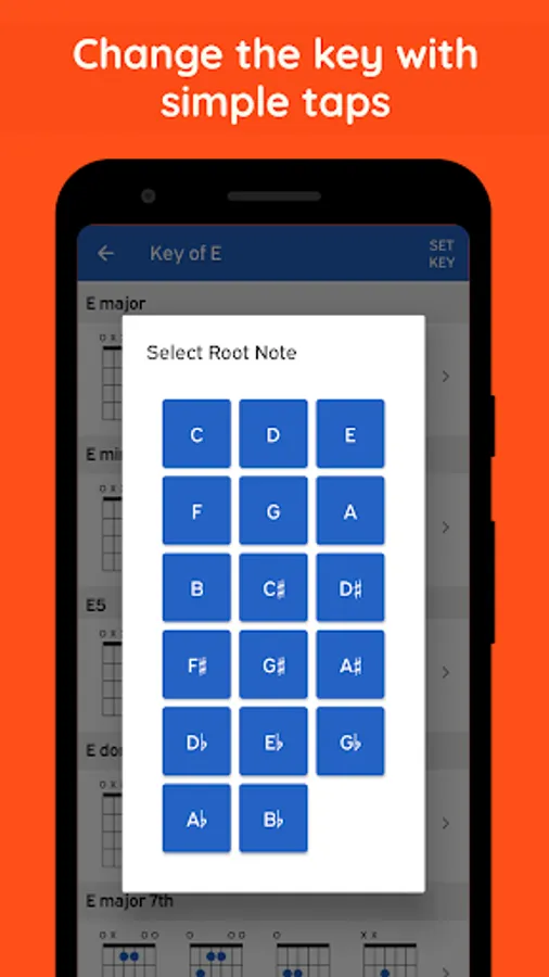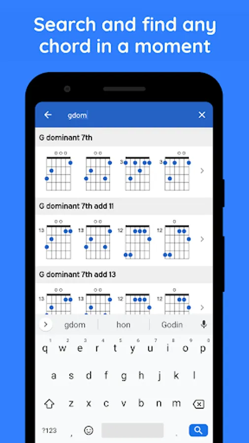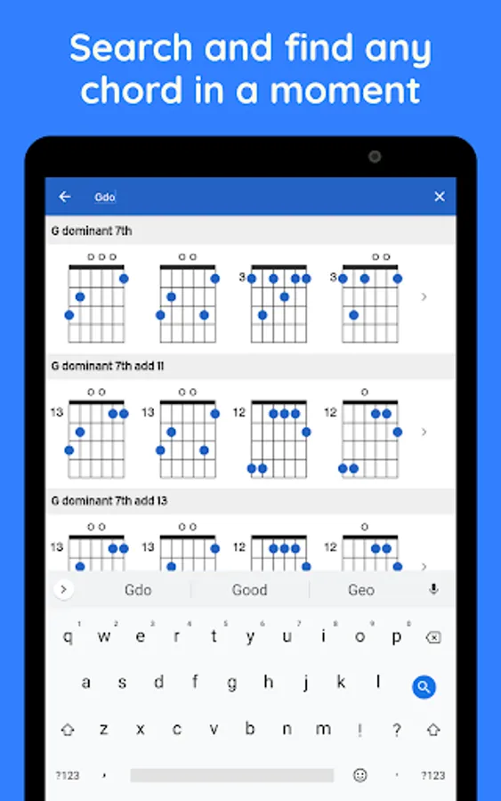 • Search and quickly find any chord in any key