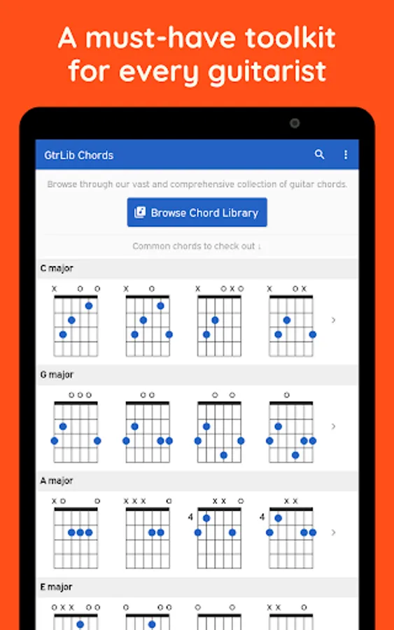 • Vast and comprehensive chord library for guitar