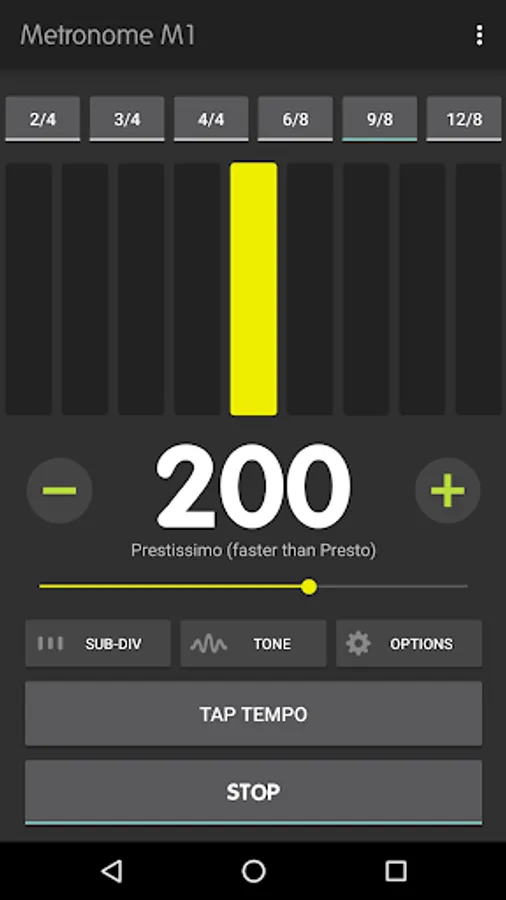 Metronome M1 is a simple and extremely accurate metronome for mobile devices. Metronome M1 comes with only the most essential features anyone will need from a metronome. The simple and clean user interface of Metronome M1 lets you get to practicing your instrument immediately without having to spend any time exploring the app.