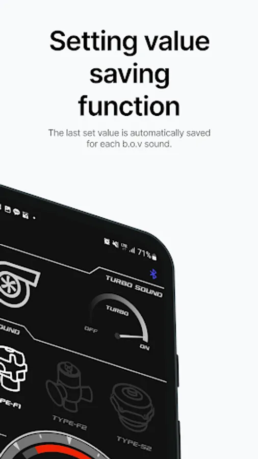 Each BLOW OFF VALVE sound can be set to the desired value, and the last setting value is automatically saved.