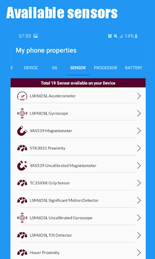 Whether it be information regarding the memory of your device , System on Chip (SoC), or tech specs about your battery or all the relevant information about your device sensors – My phone properties is your complete listings of all Software & Hardware details.