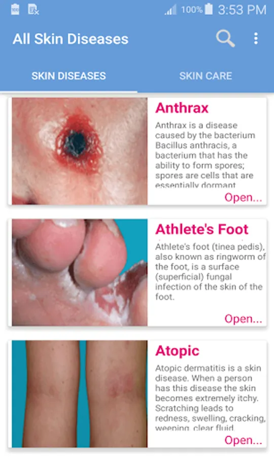 All Skin Diseases and Treatment- A to Z is an offline android book for dermatology a to z.All skin diseases and treatment offline is one of the best dermatology skin care apps for skin diseases and skin disorders. Download this dermatology book free and learn about skin diseases ,causes,symptoms,diagnosis and treatment.