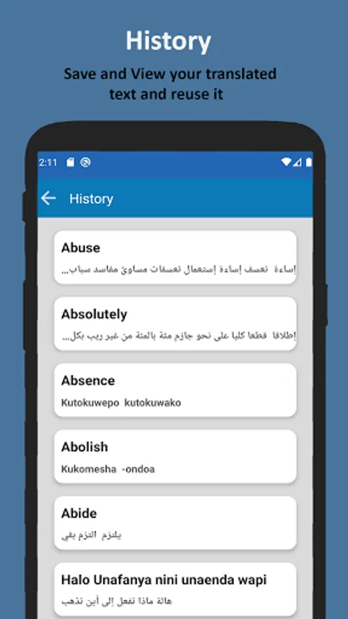 Arabic To Swahili Translation App is completely free for all the users. You can translate whole paragraph Arabic Words In Swahili Language. Swahili Words And English Translation application is best to translate texts very fast in your cell phone or tablet.