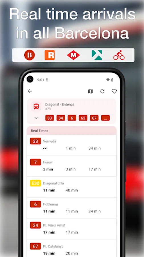 · Live time arrivals for TMB buses, Metro, Rodalies and Tram.