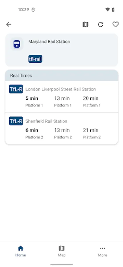 London Transport Live Times gives you live times for Bus, Tube, Overground, Tfl Rail, River Bus for London