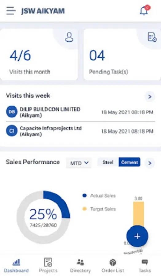 JSW Aikyam App is a one stop, omni-channel & integrated tech-led product that leverages existing products and distribution network of JSW Steel, Cement, Paints and enables field officers to provide integrated offerings to large infrastructure projects. This app also enables them to perform their daily activities in easy and efficient manner.