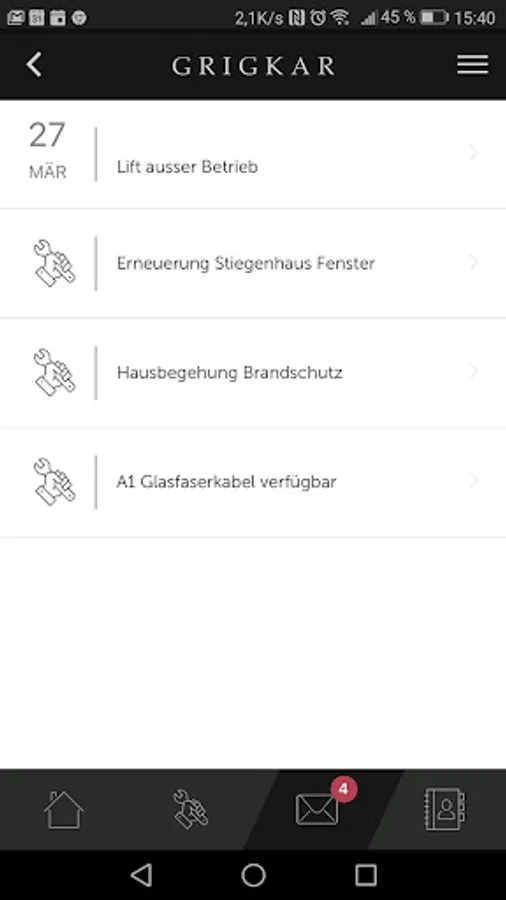 The services in the Grigkar Tenant App: